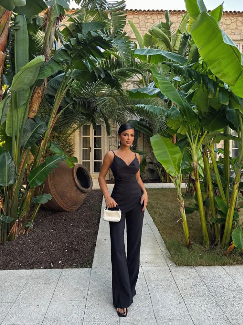 Set crop top me trianda të holla dhe pantolla këmbë të gjera. Detaj crop top pjesa e...