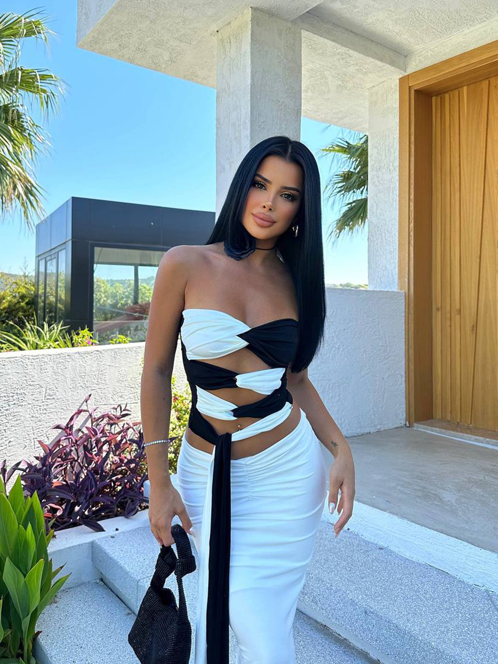 Korset në formë zemre pas trupi i çarë dhe me lidhëse para. Ngjyra: E zezë\E bardhë Materiali...